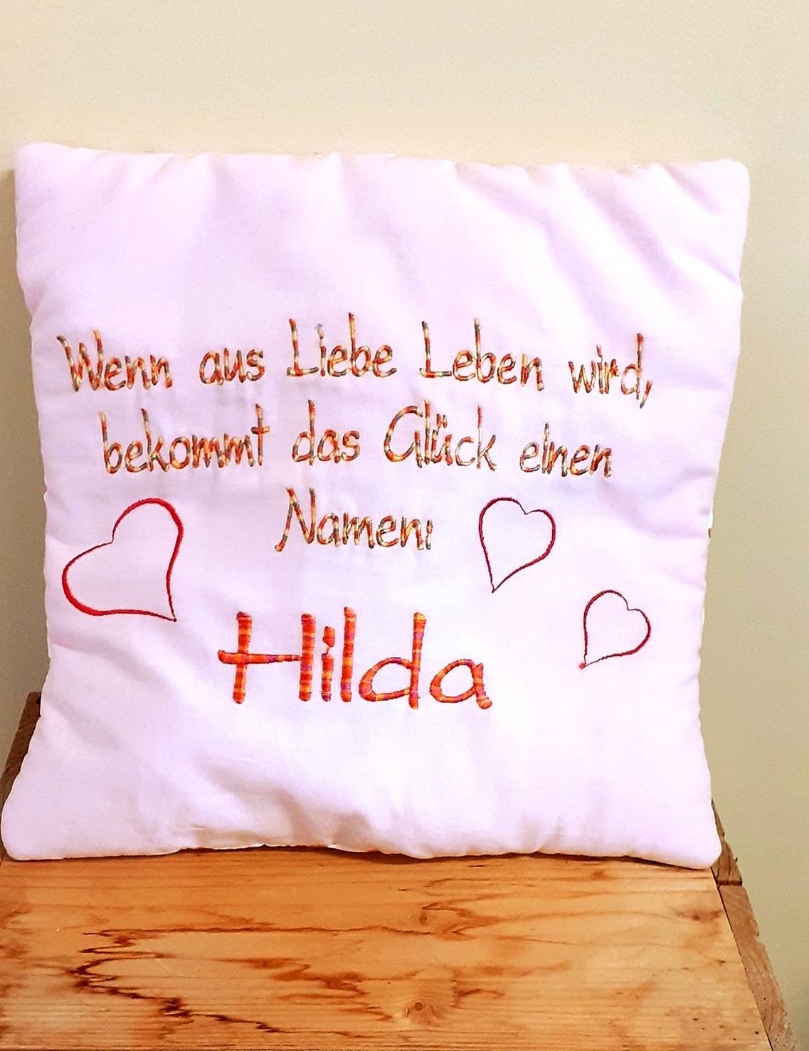 Die Stickerei wird nach Ihren persönlichen Vorstellungen erstellt und auf Ihr Geschenk gestickt.